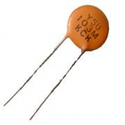 Nota: capacitores parecem pequenos discos e tem capacidade muito menor do que os capacitores eletrolíticos. Estes são os capacitores de cerâmica ou mylar. Este tipo de capacitor é usado com mais freqüência no tempo e circuitos de acoplamento. Seu valor é representado como um código de três letras impressas no corpo do capacitor e é normalmente picofarads.